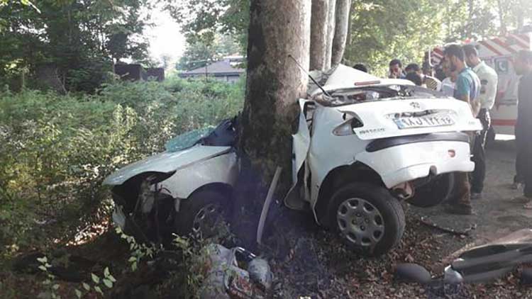 یک دستگاه خودروی پژو 206 به علت سرعت غیرمجاز در مسیر تونل سبز گل افزان به فومن با یک اصله درخت برخورد کرد.